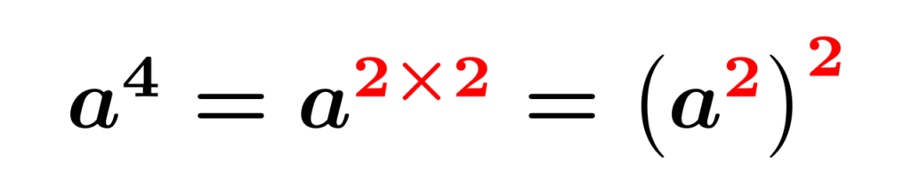 これらの式を見たときにまず感じてほしいことが「$x^2$をかたまりに見ることができるぞ!」ということです。指数法則より、$x^4=x^{2\times 2}=(x^2)^2$とできます。わかりやすく、$t=x^2$と置き換えてみると、